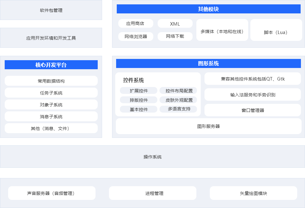 具备图形系统、应用管理、应用开发